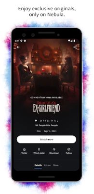 • A full catalog of videos, podcasts, and classes from all of our creators • Exclusive Nebula Originals every month • Nebula Plus — Extended cuts with additional, exclusive content • Notifications when your favorite creators release a new video • Video downloads for offline viewing