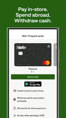 · A prepaid Mastercard to pay in-store and withdraw cash.