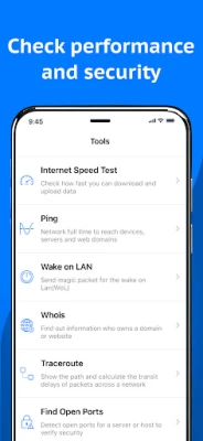 Network Analyzer is an advanced network tools designed as WiFi analyzer, WiFi scanner, network scanner, WiFi speed test, internet speed test and port scanner to troubleshoot and improve network security, connectivity issues and performances. It also offers a wide range of features to assist in diagnosing the problems within your office and home WiFi/local network, router, Internet connection and even on remote servers. All the Key features include: