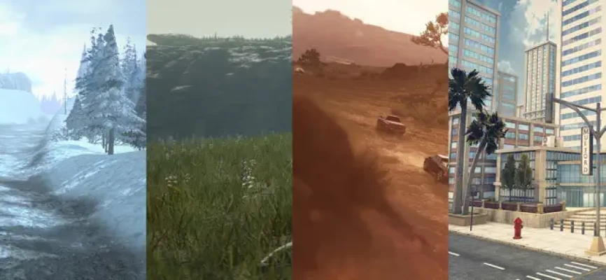 1. City - In city mode, you become a participant in road traffic. 2. Forest - Off-road mode in the forest. 3. Desert - Off-road mode in sand deserts .- 4. Stunt - 30 levels