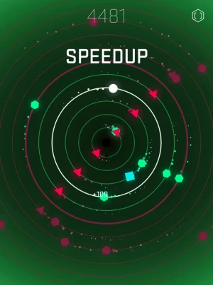 The rules are simple: switch the orbits, survive against all odds and keep calm. A tap is all it takes to get through. But you’ll discover less is more when your dexterity starts to be put to the test. Starting off fairly simple and gradually building up into something quite fiendish, the game will keep your grey matter ticking over in unison with the stimulating techno sounds. Appearing out of nowhere and vanishing in darkness, the round-dancing shapes will make your head swim, hands sweat and teeth clench. But as you get the rhythm you will see that there's nothing more satisfying than the feeling of genuine achievement after you've nailed another hellish level.