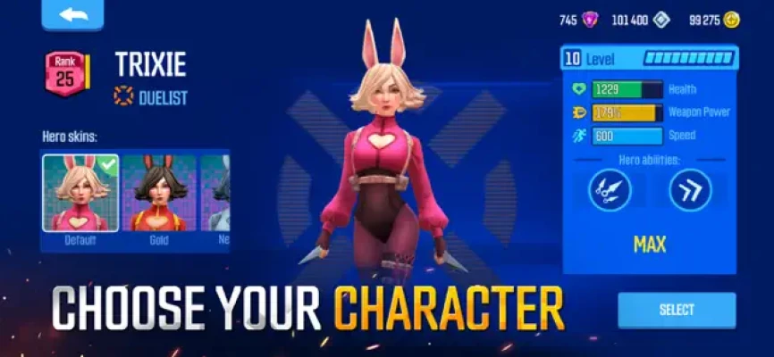 Go to the game and choose a hero to suit your playing style.