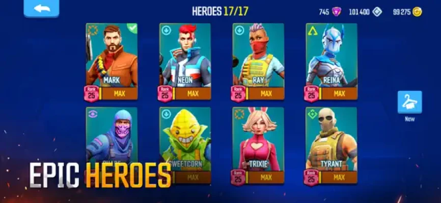 Unlock and level up dozens of heroes, whose unique abilities make each battle unpredictable and exciting!