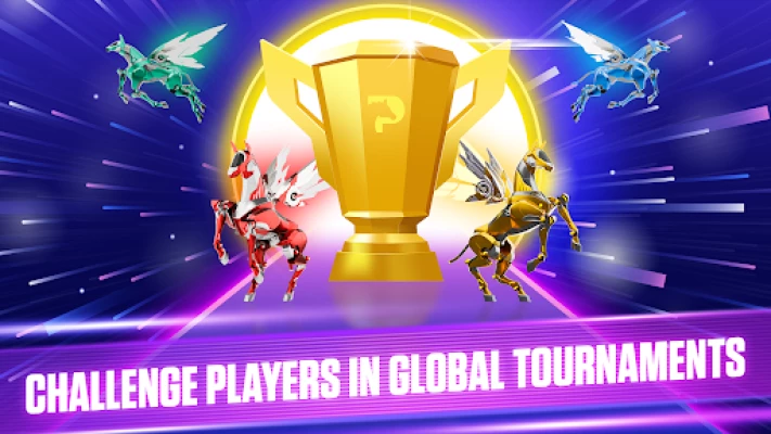 Control your futuristic mecha horse – your Pega – as you steer your steed around the racetrack. You must use your power-ups strategically to outpace other players in tense, exciting races.. Your Pega's race performance can increase or decrease your Trophy count on the global leaderboard, adding suspense and value to every race!