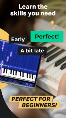 • Piano By Yousician also teaches you music theory and Includes special trainers for each piano skill.