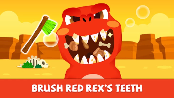 • Brush dino teeth, color pictures, and play puzzles in fun dino games for kids.