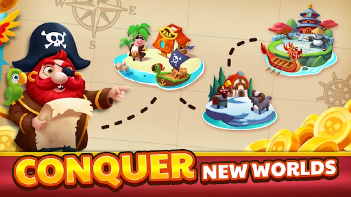You can explore many beautiful islands in this pirate kingdom! Let's go! You will become a rich pirate king to build and explore exquisitely designed islands by winning coins from spins, attack and raids, and enjoy the fun of entertaining interaction with your friends.
