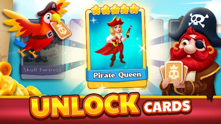 When building an island, you have chance to get cannons and shovels, then merge to upgrade them. The higher level of weapons, the more extra coins you can earn from attack and raid. Enjoy this unique and innovative gameplay and get your own pirate weapons to conquer the ocean.