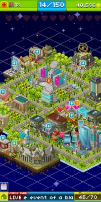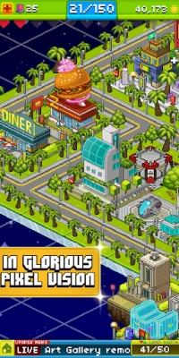 You can create more than 300 different Pixel People, find secret bonuses and minigames inside your buildings drawn in distinct pixelated art style, and move and customize your Pixel Utopia however you wish!