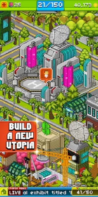 Greet new clones to Utopia at the arrival centre, then find them a place in your new world. Splice genes of residents and combine their skills to discover new Pixel People to join your thriving city.