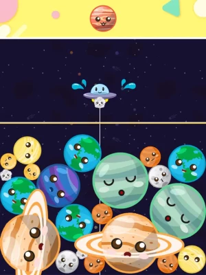 - Determine the position (left or right) to drop the planet while tapping, and release the tap to drop it.