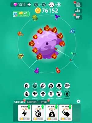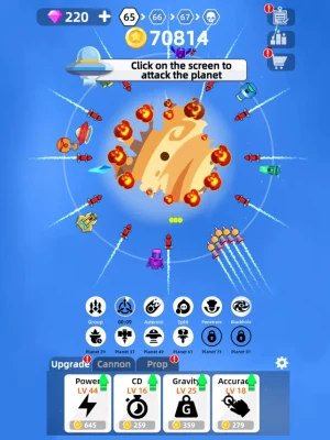 Collect your daily rewards & offline earnings and upgrade your weapons or skills. Additionally, Planet Smash features impeccable weapons that have different damage like the FLAME, ICE, LIGHTING, NUKE & more. Create your ultimate planet bomber attack with powerful upgrades to destroy even the largest planets!