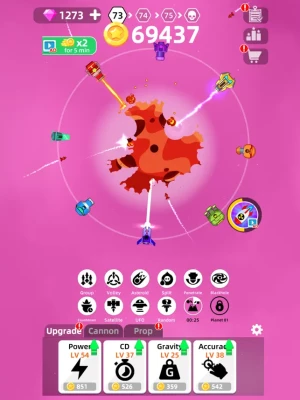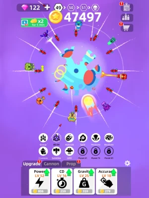 As you find a planet , you can enjoy idle gameplay or you can tap on the planets for fast missile shooting. In this idle space clicker, you need to destroy the planets that come into your way in the fastest way possible. How long can you go in the level based idle space smashing quest?