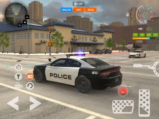 Thanks to the three buttons added to the top of the game, it is possible to change the physics of your police car as you wish. These buttons are arcade, drift and simulator buttons. The arcade mode in the game is available for the rapid return, the drift mode and the realistic driving impression in the simulator. This game is actually a police car drive game in the comprehensive simulation category. A simulation that both police game lovers and car game lovers cannot give up awaits you.