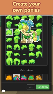 Create ponies with unicorn horns, pegasus wings, and various mane and tail styles. Or turn it into your own unique species by adding parts such as claws, fish tails, dragon wings, or fangs. Make your creation feel just right with various clothing and accessories to top it all off. Thanks to the ever-expanding list of available character customizations, the only limit is your own imagination!