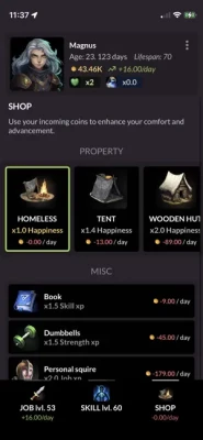 You first start off as a beggar, barely being able to feed yourself as the days go by. However, over the years you learn new skills and gain plenty of work experience to enter new high paying jobs while managing your living expenses...