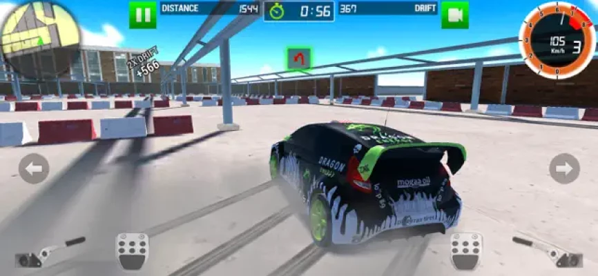 Game has three modes, survival, challenge and realtime multiplayer. In survival mode, you should drift and drive as long as you can, and pass checkpoints. In challenge mode there are 60 different challenges that you have to pass. In realtime multiplayer mode, you can race with real people which are your friends or random players.