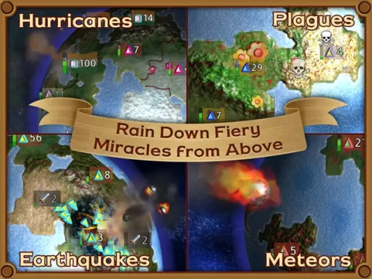 The End is coming! Bombard the globe with devastating miracles and decimate the enemy civilizations. Guide your armies to dominate the planet and catch your people up to heaven!