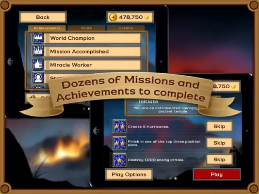 Inspired by classic god games such as Civilization and Populous, reinvented for short match times on mobile. There are dozens of missions, achievements and unlockable content.