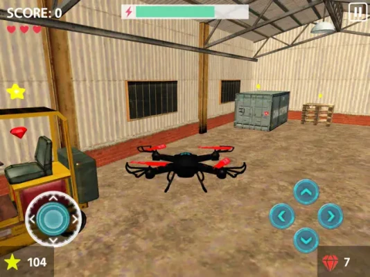 Fly remote controlled drones and collect stars at three different places: Office, Supermarket and Warehouse.
