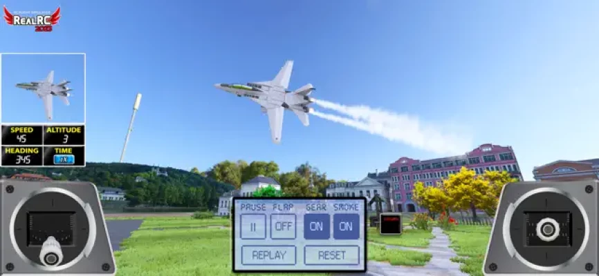 We included the virtual RC Controller on the screen fully configurable and a physics algorithm very close to what you can do with your real RC plane.