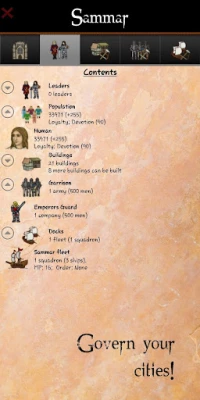 Rising Empires 2 features a rich and large technology tree and loads of buildings ranging from regular marketplaces to structures unique to specific races. Expand by building both settlements and fortifications. And even better: design your own troop types and try to master the advanced combat system with your own strategy. Make war against other empires, undead Ghouls, raging Minotaur clans, secretive Lizard men and powerful Dragons!