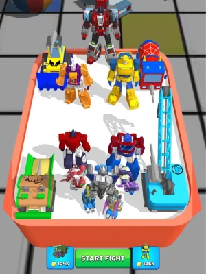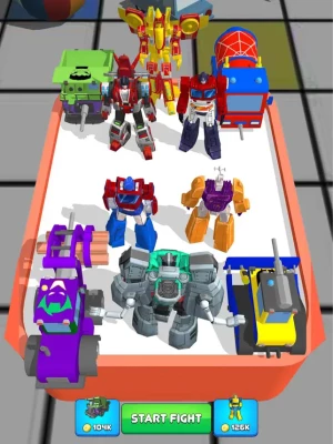Super Robot Car Merge Master is an attractive and addictive real-time strategy game for everyone. The main goal is to beat all the enemies by combining your monsters to grow from the simple. Combine quickly and actively attack enemies to gain control of enemy positions and possess greater power than the opponent. At the same time, use your strategy and tactics to win the battle and move on to the next level.