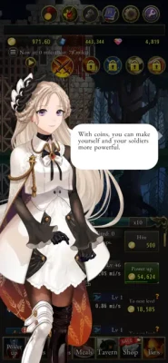 Completing quests and killing monsters will earn you coins that you can use to make your troops stronger.