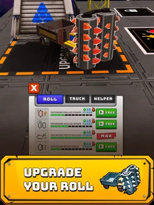 Upgrade your Roll Machine to unlock its full potential! Enhance the number of rolls, increase roll power, boost roll speed, add more spikes, and scale up their size to become a legend Roll Machine. Upgrade your truck's speed and capacity to efficiently transport those valuable rocks. As for the helpers, enhance their power and capacity to ensure smooth operations. Oops, don’t forget to claim your idle profits! Remember, it's your game, and your strategy matters! Invest strategically to increase productivity!