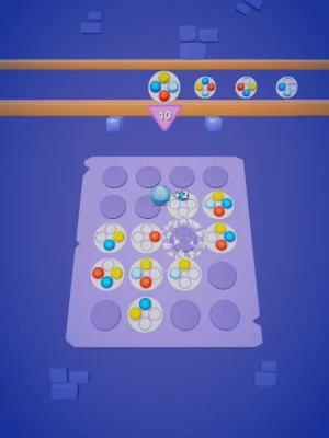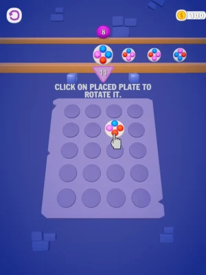 Strategically place the plates.Rotate them to blast the colors.Reach your objective and win the game.