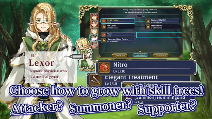 Use the skill tree to allocate skill points and focus on mastering a single skill or a variety of magic. With plenty of unique bosses to go around, and powerful equipment dropped by enemies in turn-based battles, challenges are unlimited.