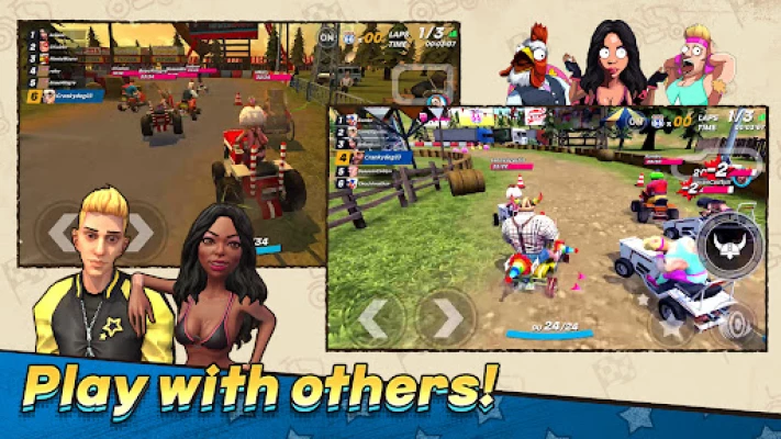 Flatten opponents with a bowling ball or turn them into chickens! Get ready for unpredictable and hilarious moments!