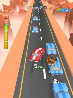 You are in rush hour! You have to level your car up by overtaking other cars and unlock new and better cars as you overtake them!