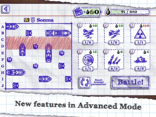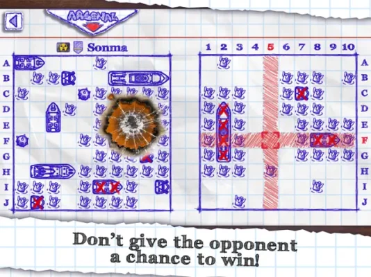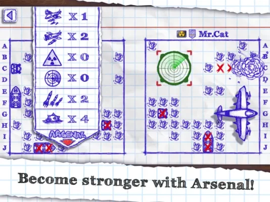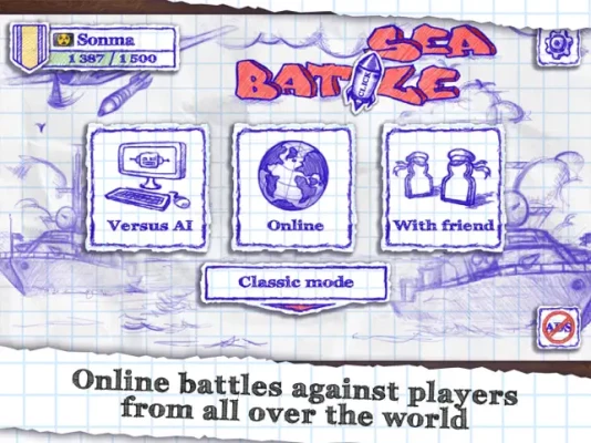 Sea Battle is a board game everybody loves since childhood but with new options! Online multiplayer! Fight against the players from all over the world! You have a wide arsenal in your disposal: battleships, destroyers, bombers, mines, anti-aircraft defense, radars and other stuff. Place your ships of different size on the battlefield, launch the aircraft for massive bombshells and try to sink the rival ships.By combining different positioning of your ships, aircraft, anti-aircraft defense and mines you can develop your own strategy for the game and leave no chances for your opponents!Sea Battle is a game with elaborate squared notebook graphics and effects, which make the game original and create a special atmosphere!