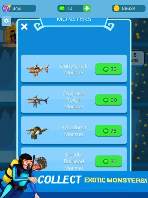 Features: -Free to play and easy to learn -Exciting jurassic sea dinosaurs to unlock at every area -Crossbreed between different sea creatures and create new hybrids -Interact to make them work or level up to train them to work automatically -Fight in underwater battle arena. Battle between mosasaurus and megalodon. See who wins!