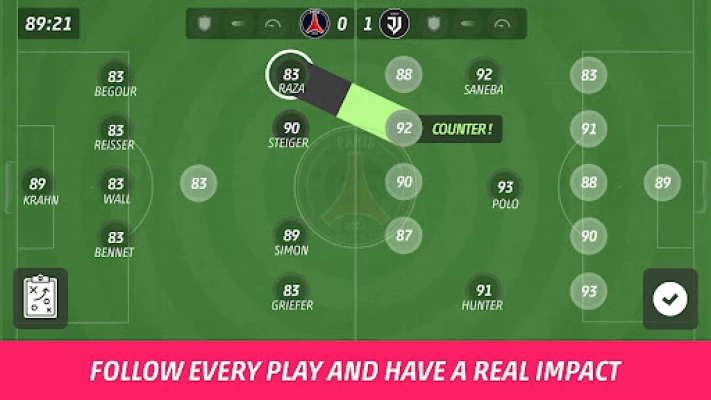 - Negotiate transfer fees with other clubs and find reinforcements and replacements for your team on the transfer market