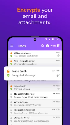 The SecureMyEmail™ secure email app for Android provides easy PGP email encryption for any email address so everyone can enjoy the privacy of end-to-end encryption without having to switch their email provider.