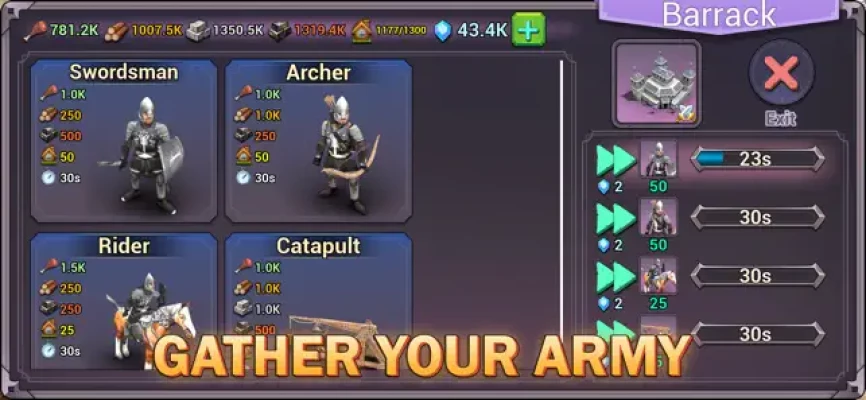 To do this, you will need to build and fortify your cities, extract resources, create an army, capture enemy cities, defend your fortress and attack hostile clans.