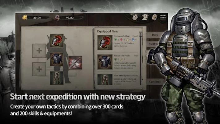 Over 300 cards, 200+ skills and equipment can be combined to create completely different play styles. Try different strategies on every single expeditions.