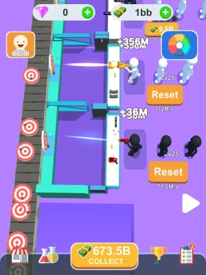 Start with the first shooting target. Attract guests to experience shooting. You can get benefits from it. Upgrade the shooting target with income to give guests a better experience. Then you can buy some new targets to expand your shop. Continuous expansion until you become a shooting field tycoon.
