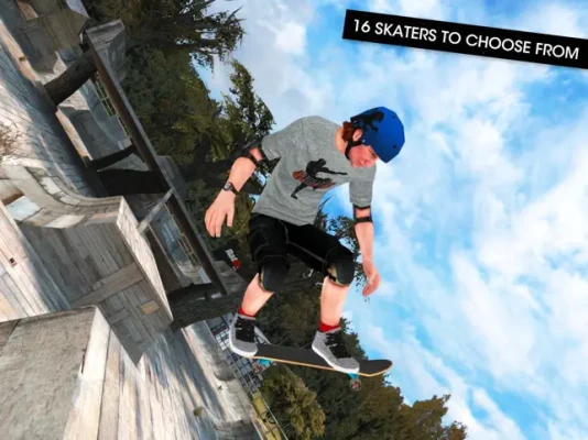 Select between 16 skaters and customize each of them to your preference choosing your favorite skateboard gear. A massive collection of outfits, shoes, boards, trucks and wheels are available including items from Osiris, Onnit, Nectar, Jammypack, FKD Bearings and Darkstar.