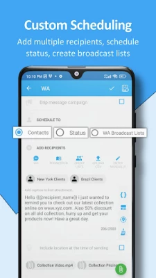 ● Business Productivity: Auto-send messages in different time zones automatically, Send instructions to your team, Send out job opportunities, etc