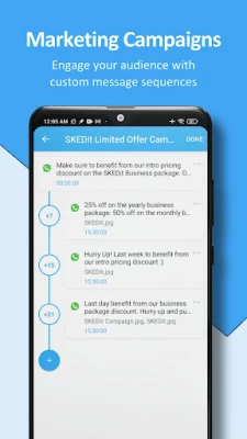 Grow your business with SKEDit. The all-in-one Scheduling Autoresponder app allows you to Schedule WhatsApp messages & status, Schedule Telegram & Messenger messages, set WhatsApp & Telegram AutoReplies, and Schedule SMS & Emails.