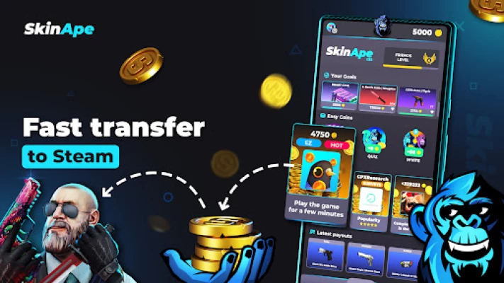 👉How to get free CS2 skins? Start by solving CSGO quizzes and completing tasks from our partners to earn coins. You can use the earned coins to open cases or purchase specific skins from the Skin Ape marketplace! Skins (skins) for CS GO are sent directly to your Steam profile via your Trade URL. It's a quick and secure solution!