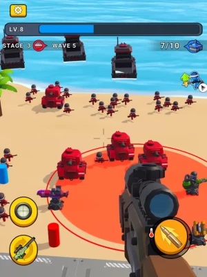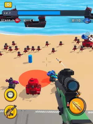 There are numerous enemies and soldiers on the battlefield. You will transform into a top-notch sniper, using your sniper rifle to prevent enemies from landing on the beach. Employ various weapons to halt the enemy's advance, upgrading these weapons is essential to stand against even stronger adversaries. You need to survive, using your skills and strategies to protect your coastline. Fight and annihilate more enemy forces, you have the power to stop them.You can play everywhere ,every time. It is a boring killer game.