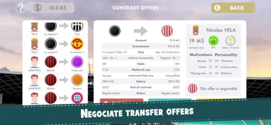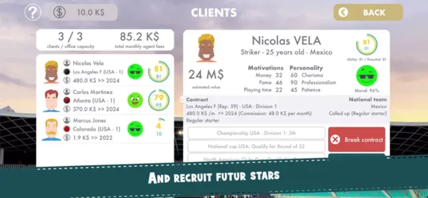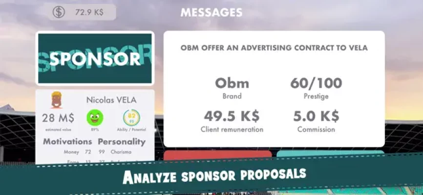 Manage your clients' careers, negotiate their contracts, their choice of transfers and advertising contracts.