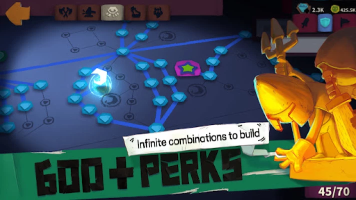 In this game, you will have two basic perks to represent offense and defense respectively. More than 600 perks provide you with countless options and possibilities. Try to plan your growth route with limited perk points, and find the best way out.