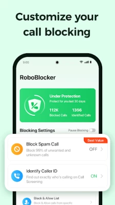 • Automatically block robocalls, spam calls, scam calls, no caller ID calls, telemarketers, unwanted calls