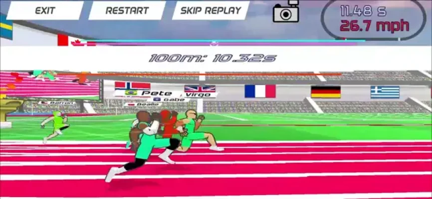 Simple yet tricky, competitive, fast-paced physics game! Use two-finger touch controls to zip down the 100m straightaway! Master your timing and you'll zoom at scintillating speeds, smashing your personal bests and climbing the world ranking!