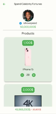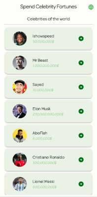 Discover the thrilling world of Spend Celebrity Fortunes! Learn how stars like MrBeast, IShowSpeed, and Cristiano Ronaldo spend their wealth, and see what it’s like to spend Elon Musk money on luxury and adventure. Create your own lavish lifestyle while exploring the extravagant spending habits of your favorite celebrities. Download Spend Celebrity Fortunes now and dive into the lives of the rich and famous!